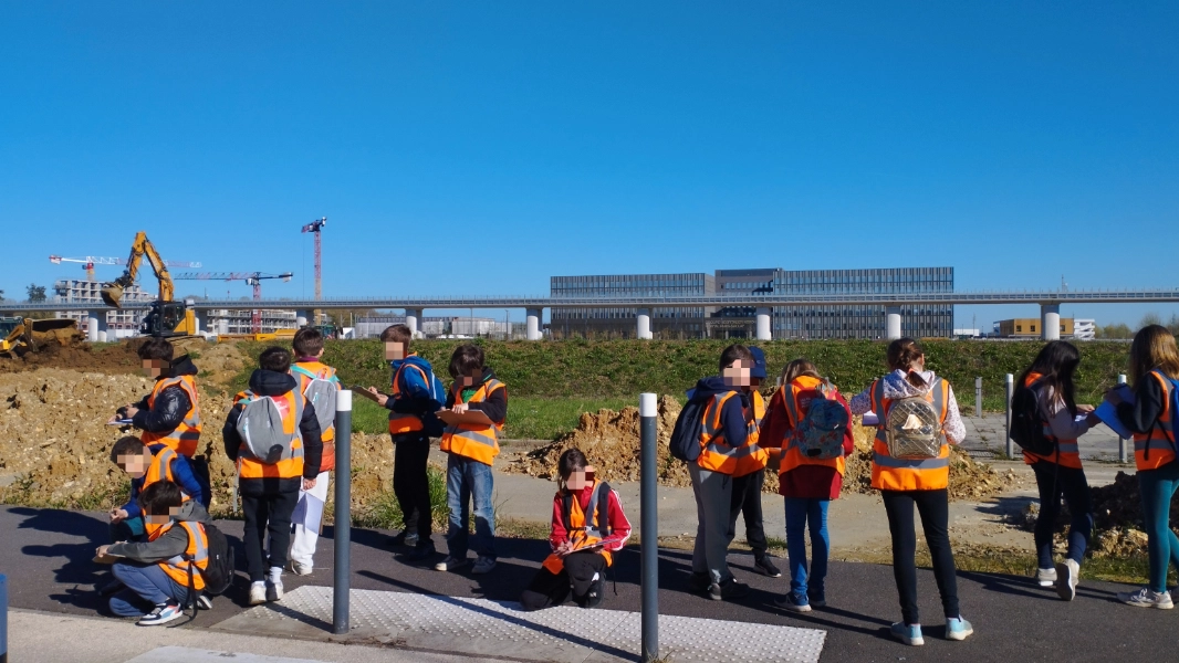 À l’approche de la mise en service de la ligne 18 du Grand Paris Express, la Société des Grands Projets et les CAUE Île-de-France se sont associés pour déployer un programme d’actions pédagogiques à destination des écoles des futurs quartiers de gare de la ligne. En 2026, les enfants de classes de CM1 et CM2, de 5 écoles issues de 5 villes (Gif-sur-Yvette, Massy, Orsay, Palaiseau, Saclay) traversées par la ligne participent aux ateliers pédagogiques menés par le CAUE de l’Essonne. Ensemble, ils découvrent puis racontent les transformations de leurs quartiers et les perspectives qu’offre la mise en service de cette nouvelle ligne de métro.