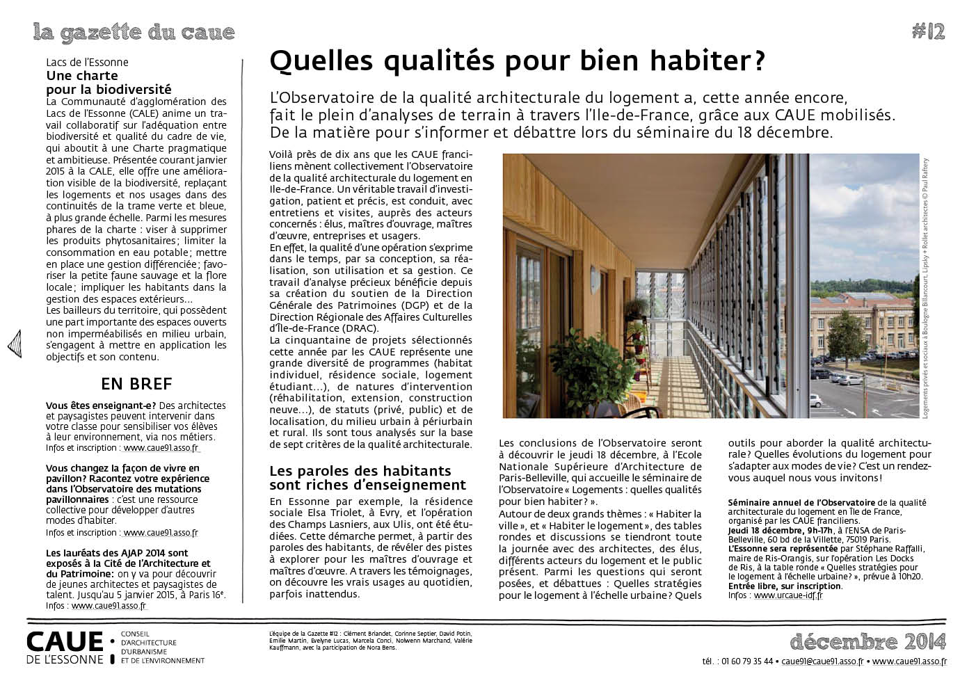 Pour répondre à cette question complexe, les CAUE de l'Ile-de-France ont mené de minutieuses enquêtes auprès de tous les publics concernés. Des conclusions passionnantes, parfois surprenantes, qui seront présentées, et discutées, le 18 décembre prochain, lors du séminaire annuel de l'Observatoire de la qualité architecturale du logement en Île-de-France.